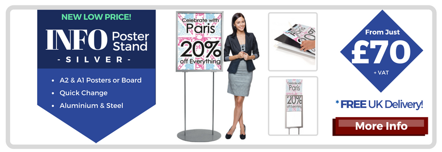 Please visit below for our special offers on poster display stands, display easels, sign stand and floor standing sign holder. All the best free standing poster displays.